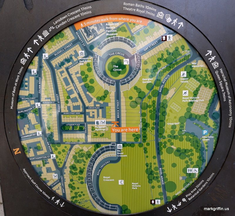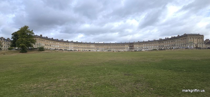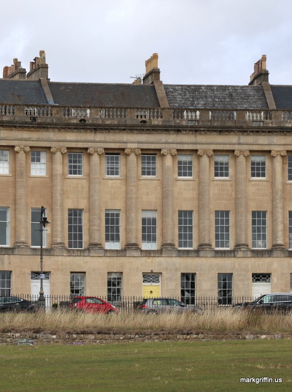 Turn 180 degrees from enjoying the park and you’ll see the Royal Crescent. It is one of the most iconic examples of Georgian architecture in Britain. Designed by John Wood the Younger and built between 1767 and 1775, it consists of 30 terraced houses arranged in a sweeping crescent overlooking Royal Victoria Park. Today many of the houses which had formerly been the residences of single families with maids or other staff were divided into flats and offices.